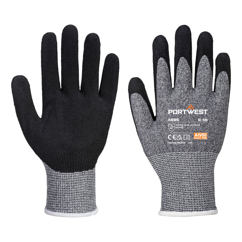 ANSI cut level A6. Nitrile foam coating for excellent grip in wet and dry conditions. Palm dipped to increase dexterity and ventilation. Seamless 13 gauge liner.